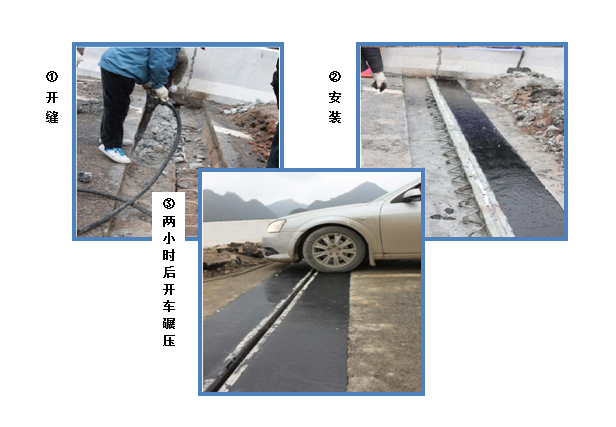 可使用聚氨酯彈性混凝土進行伸縮縫的處理。伸縮縫隨著荷載及溫度等的變化而膨脹、收縮或者變形,彈性混凝土也會隨著縫體的這種膨脹、收縮或者變形而拉伸、收縮及變形;