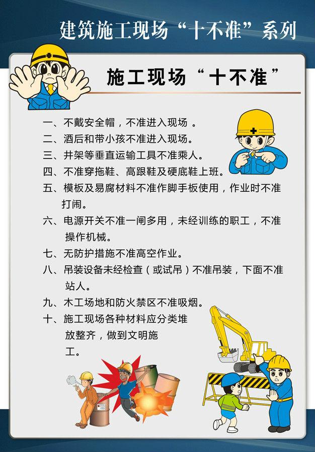 在此,為大家提供建筑工程施工現(xiàn)場常有“十不準(zhǔn)”的掛圖,以防患于未然,為建筑工人的安全保駕護(hù)航。在此,為您分享九款掛圖,總有一款是您需要的!