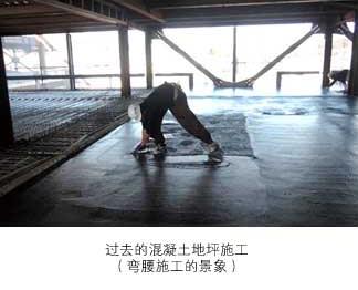 混凝土地坪施工時(shí)需要保持彎腰狀態(tài),對(duì)身體的負(fù)擔(dān)較重,根據(jù)混凝土的澆注面積和硬化情況的不同,有時(shí)需要多名泥工分工協(xié)作,或延長(zhǎng)作業(yè)時(shí)間。鋪設(shè)地坪使用的機(jī)械是通常是汽油發(fā)動(dòng)機(jī)驅(qū)動(dòng)的,而且非常重(機(jī)械+操作員約為350kg),所以在運(yùn)輸和適用場(chǎng)所方面存在限制。