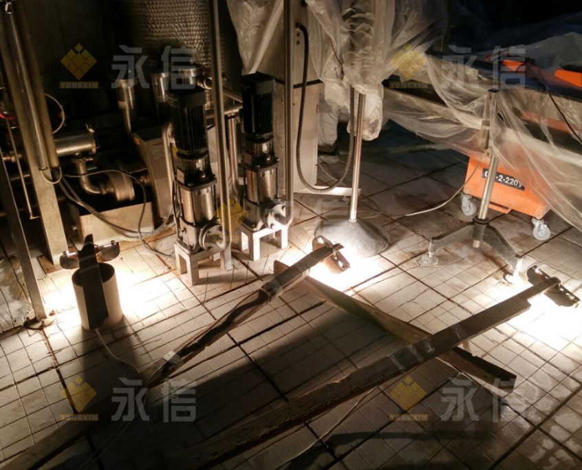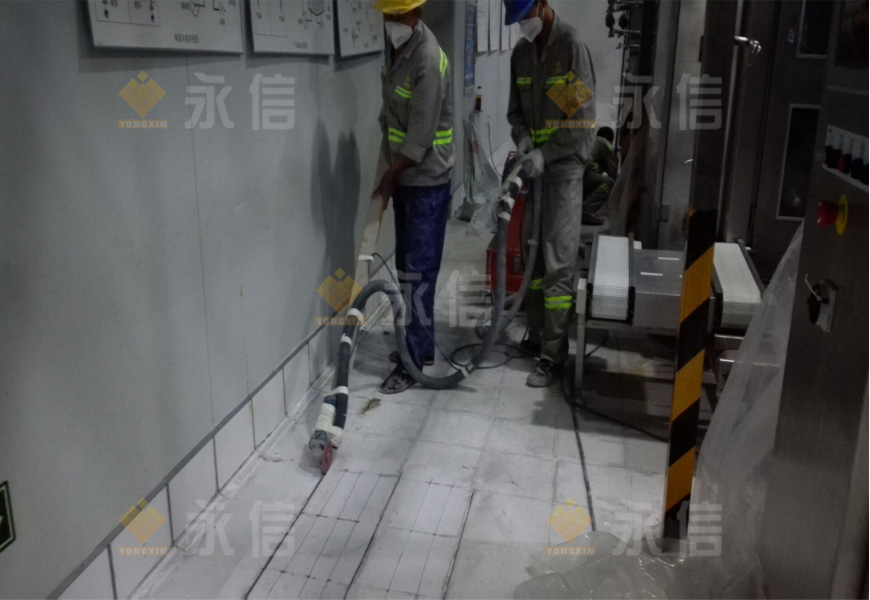 當(dāng)天,按照既定的施工計劃,現(xiàn)場的施工內(nèi)容是在人流通道區(qū)去除環(huán)氧以及基層處理、灌裝間破損、空鼓地磚破除聚合物修復(fù)及地磚錨固設(shè)置等。